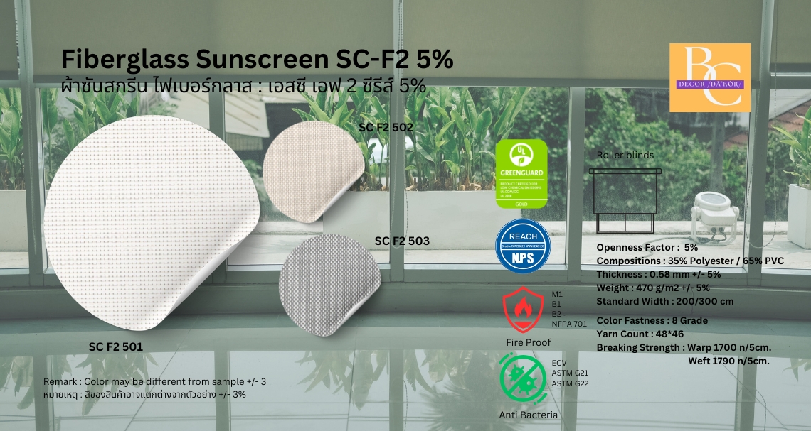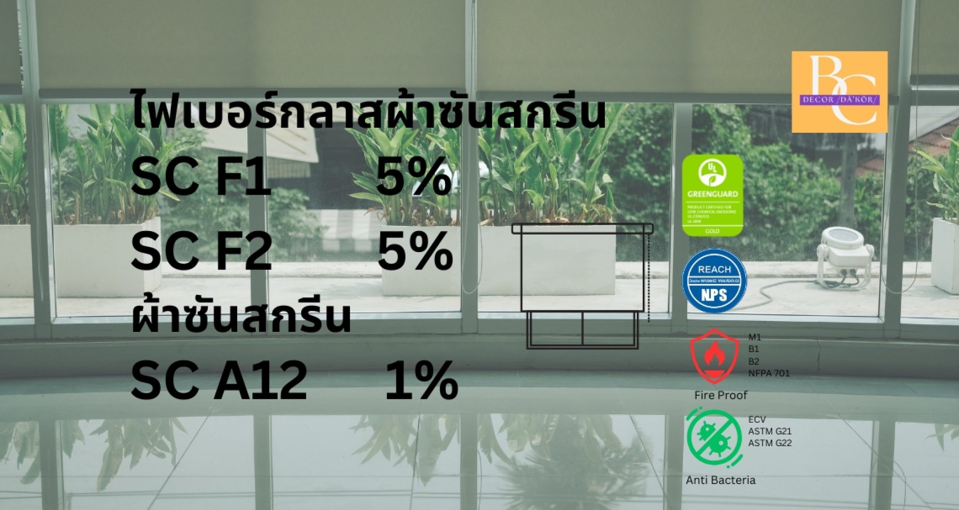 ผ้าซันสกรีน SC F1 F2 5% A12 1% ผลิตม่านม้วน ในประเทศ สามารถสั่งตัดตามขนาดที่ต้องการ รองรับระบบโซ่วนเส้นเดียว และระบบอัตโนมัติ